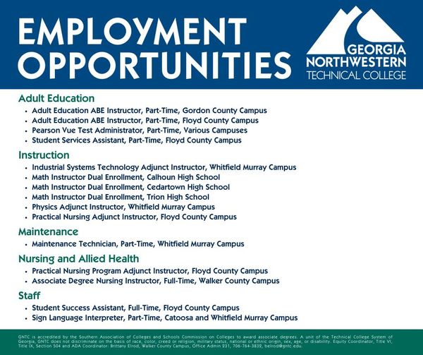 HomeAvailable JobsGNTC is hiringGNTC is hiringWed, May 29, 2024SHARE NOW GNTC is hiring! Visit our website for more information and a full list of employment opportunities. www.gntc.edu/about/employment/