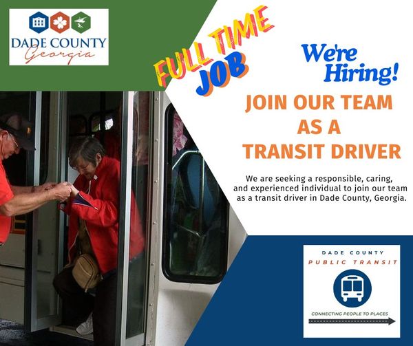 HomeAvailable JobsThere’s a full time job opening with Dade County as a Transit DriveThere’s a full time job opening with Dade County as a Transit DriveTue, July 16, 2024SHARE NOW There’s a full time job opening with Dade County as a Transit Driver. Apply on our website.