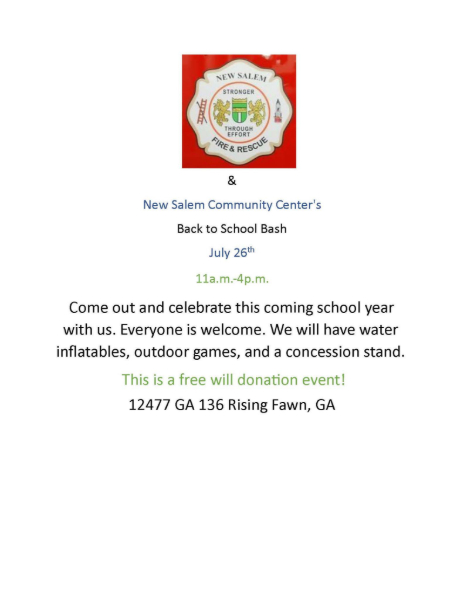 Get ready to kick off the new school year with a splash of fun! Join us Saturday, July 26th from 11 AM to 4 PM at the New Salem Community Center for a day full of family-friendly excitement, hosted by New Salem Fire & Rescue and the New Salem Community Center.