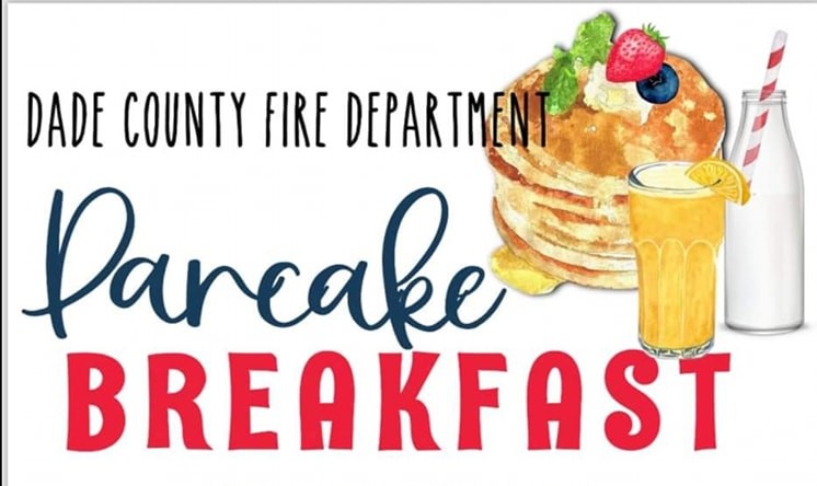 HomeEventsDade County Fire Department Pancake Breakfast Dade County Fire Department Pancake Breakfast SHARE NOW Sat, Apr 13 from 8:00am to 11:00am Dade County Fire Station 151 South Industrial Blvd, Trenton, GA 30752 Map Add to My Calendar