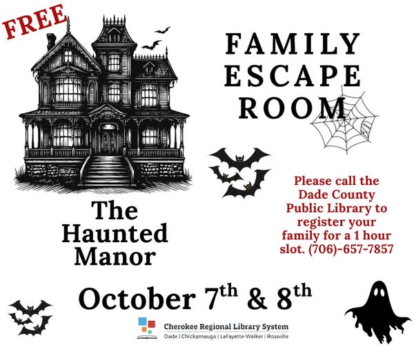 Looking for a spooky family adventure this October? The Dade County Library invites families to take on “The Haunted Manor”, a Halloween-themed escape room that promises thrills, teamwork, and plenty of fun!