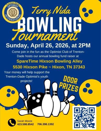 If you love bowling, you can join the Trenton-Dade Optimist Club, as they host their annual bowling fundraiser, the Terry Nida Bowling Tournament! So be sure to join for a fun time, great and friendly competition, and door prizes. All proceeds go to Trenton-Dade Optimist Club youth projects. Form a team and sign up right here: https://alliancefordade.com/uploads/index_455_3250242221.pdf