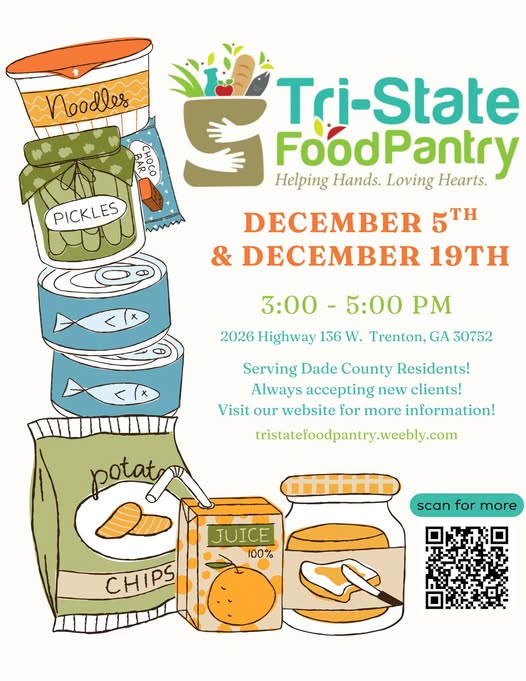The Tri-State Food Pantry will be open on December 5 and December 19 from 3:00β5:00 PM at: