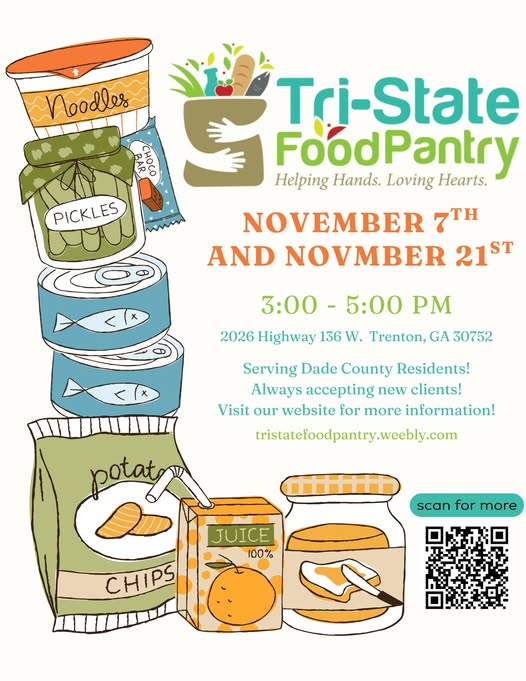 Serving Dade County residents! The Tri-State Food Pantry is always accepting new clients, so if you or someone you know could use a helping hand, please stop by.