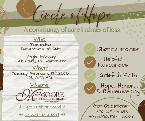 If you or someone you love is walking through a season of loss, you don’t have to do it alone. Circle of Hope offers a caring space for encouragement, connection, and support. Join us for a meaningful morning of shared stories, helpful resources, and comfort through grief, faith, and remembrance.