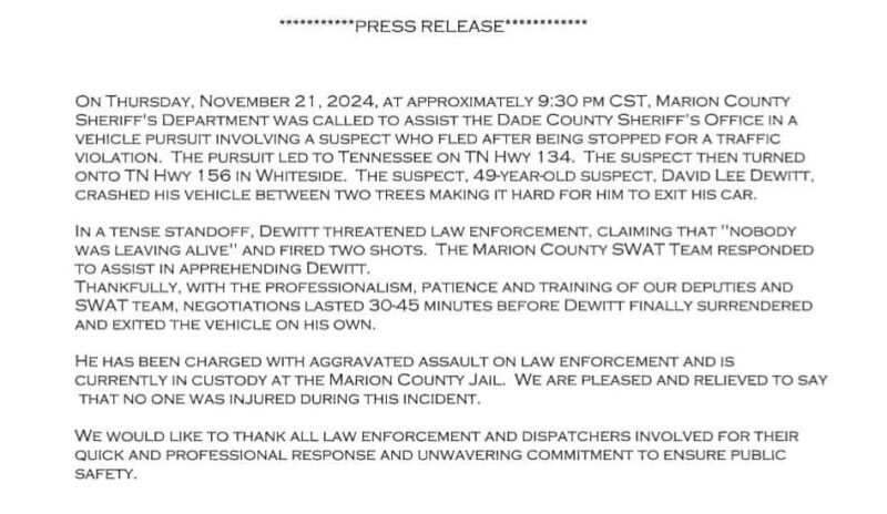 An Attempted Traffic Stop In Dade County Lead To A Standoff With The Suspect In Marion County