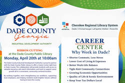 The Dade County Industrial Development Authority, in partnership with the Cherokee Regional Library System, will host a ribbon cutting ceremony for a new Career Center at the Dade County Public Library on Monday, April 20 at 10:00 a.m.