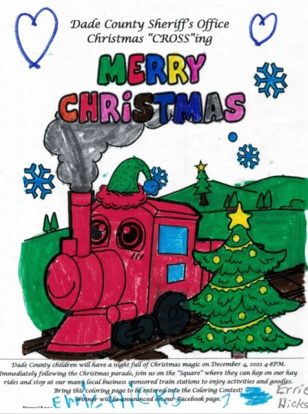 This Saturday, the Dade County Sheriff’s Office held their annual Christmas CROSSing event on the town square. During the events, they held a “Christmas Crossing Coloring Contest. Today they’ve announced the winner with the following statement: