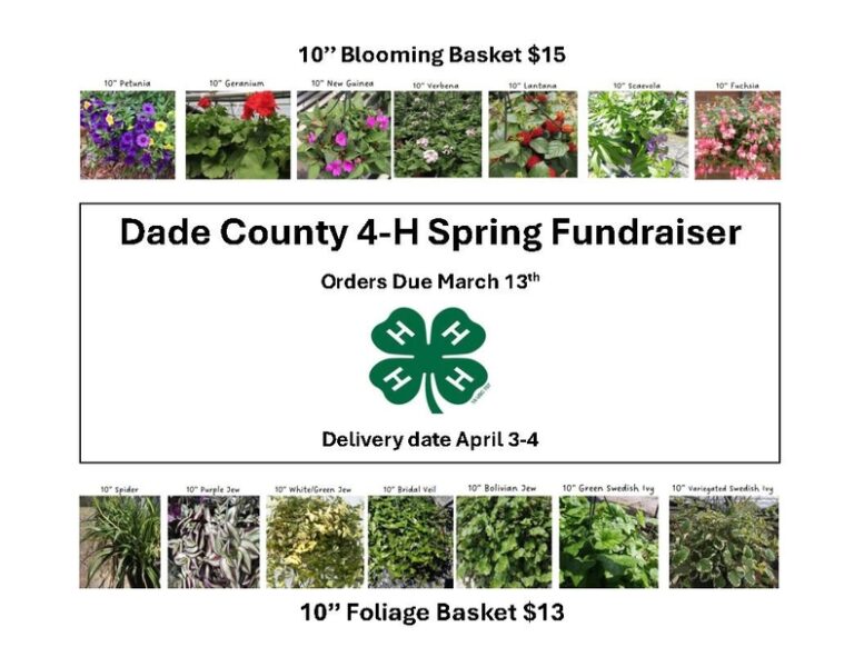 Dade County 4-H Club’s Spring Fundraiser is going on. They have hanging baskets for sale. Your donation helps fund 4-H programs that empower local youth with leadership skills, education, and hands-on experience. Each basket is crafted with care, and your support goes a long way in helping the community grow. For more information call (706) 657-4116 or email [email protected].