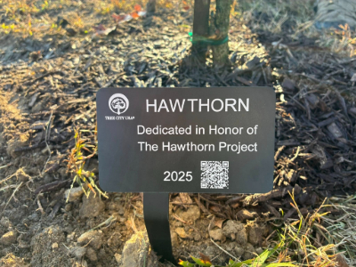 The tree planting served as a symbolic commitment to growth, education, and community collaboration — values central to both Tree City USA and The Hawthorn Project.