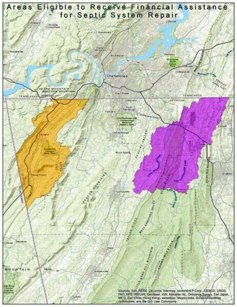 Please call the number below to check your eligibility for cost-share assistance on a septic system repair. Areas generally eligible include lands that drain to Lookout Creek or the headwaters of South Chickamauga Creek.