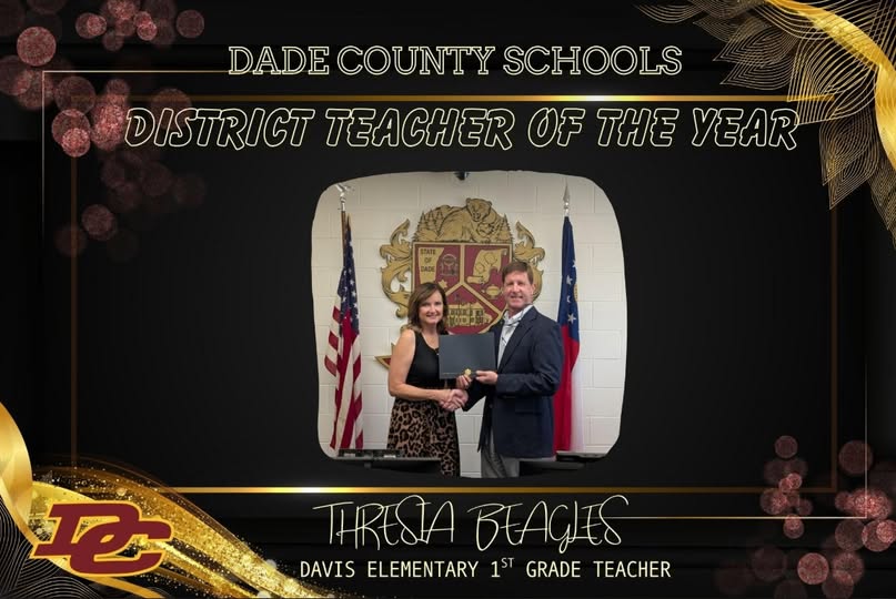 Dade County Schools is proud to announce that Mrs. Thresia Beagles, 1st grade teacher at Davis Elementary, has been named the 2025 Teacher of the Year.
