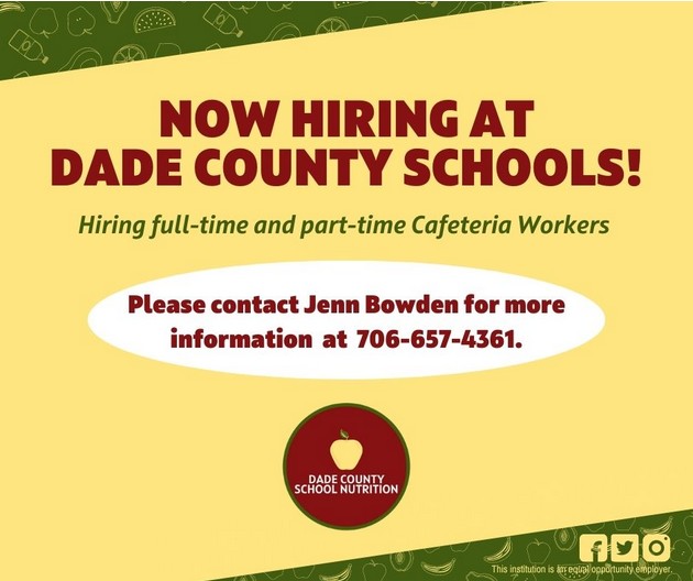HomeLocalDade County Schools Now Hiring Full- and Part-Time Cafeteria WorkersDade County Schools Now Hiring Full- and Part-Time Cafeteria WorkersMon, January 16, 2023 SHARE NOW Loading advertisement…