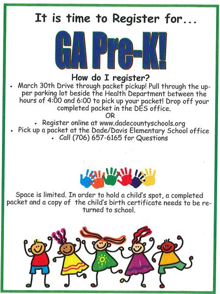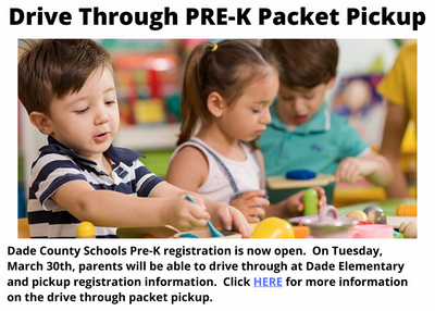 HomeLocalDade County Schools will have a drive through PRE-K packet Pickup TuesdayDade County Schools will have a drive through PRE-K packet Pickup TuesdayMon, March 29, 2021 SHARE NOW Loading advertisement…