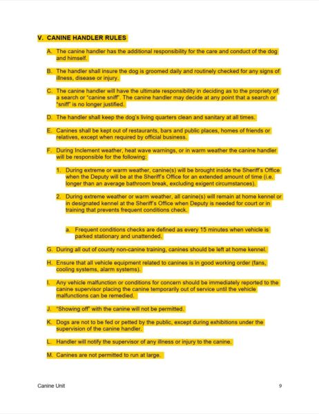 The entire K9 policy has been reviewed, overhauled, and rewritten. Among the most important changes is a section added in direct response to the tragic death of K9 Georgia earlier this year.