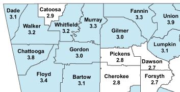Nearby counties also saw increases. Walker County’s rate rose from 2.8% to 3.2%, and Catoosa County went from 2.6% to 2.9% over the same period.