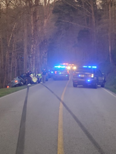 A Dade County patrol unit Sunday attempted to conduct a traffic stop on this passenger vehicle due to no tag displayed.The suspect vehicle failed to stop and led the Deputy on a high speed pursuit on Hales Gap. The suspect vehicle lost control and crashed at the blind hill and curve before Morganville Ridge.