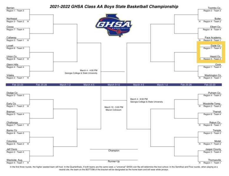 The Heard County Braves are appearing in the tournament after finishing second in the Region 5 AA tournament. They bring an 18-9 record into the matchup. The Braves missed their region championship by one point; falling to Callaway County (fans of the 08-09 Wolverines will remember the Cavaliers well) 53-52.