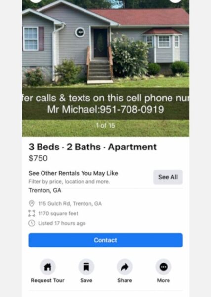 We are receiving reports of a person advertising houses for rent in Trenton, as well as surrounding areas.
