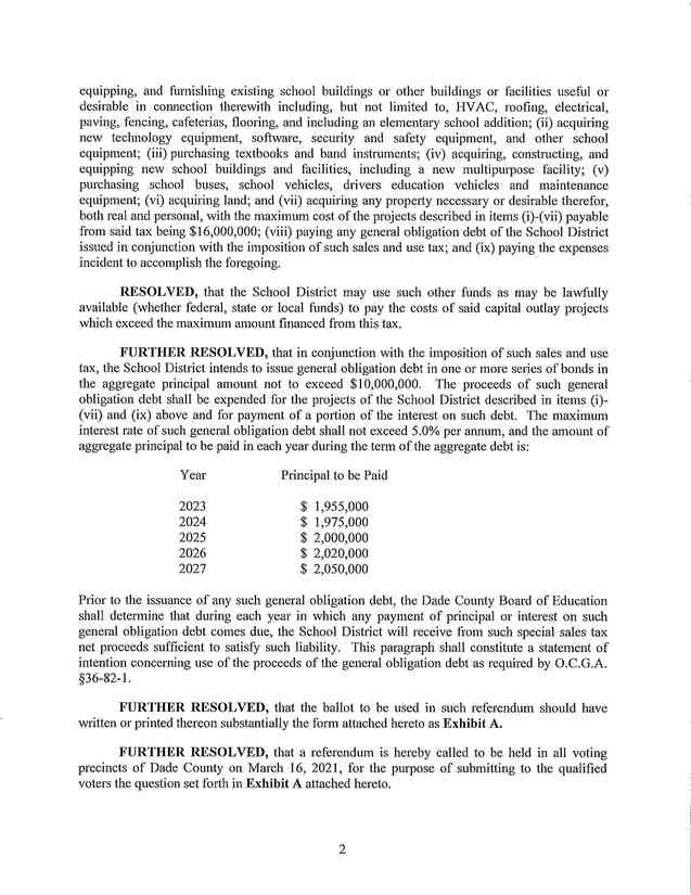 The special election will be held on March 16th, we have included below the entire resolution outlining the special projects that will be included if approved by the voters. The school board also intends within this vote to bond up to 10 million in advance of the collection.
