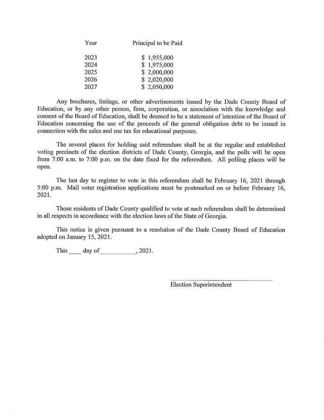 Dade voters will be asked to return to the poles for a E-SPLOST in March.