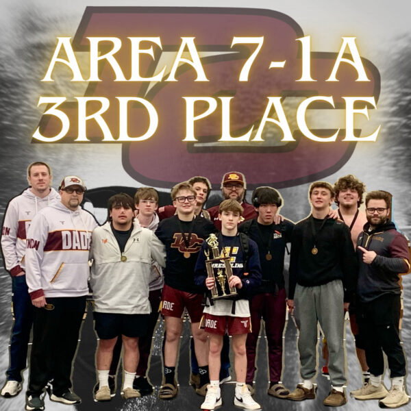 Dade County High School Wrestling showed out at the Area 7-1A tournament. As a team, Dade placed 3rd with seven young men qualifying for Sectionals this Saturday. Jordan Castellanos and Gabriel Yarbrough were tournament champions. Below are the qualifiers and their places: