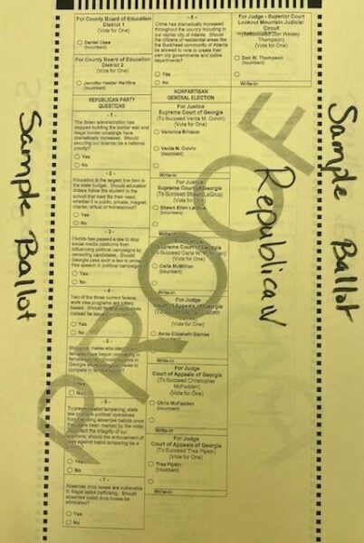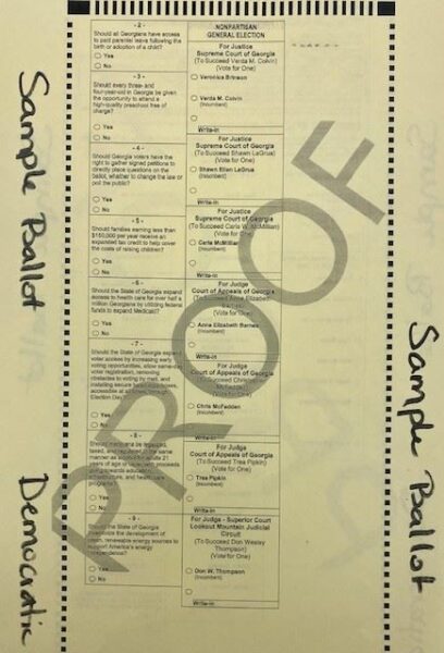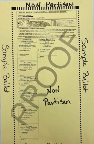 The following are sample Non-Partisan, Democrat, and Republican ballots: