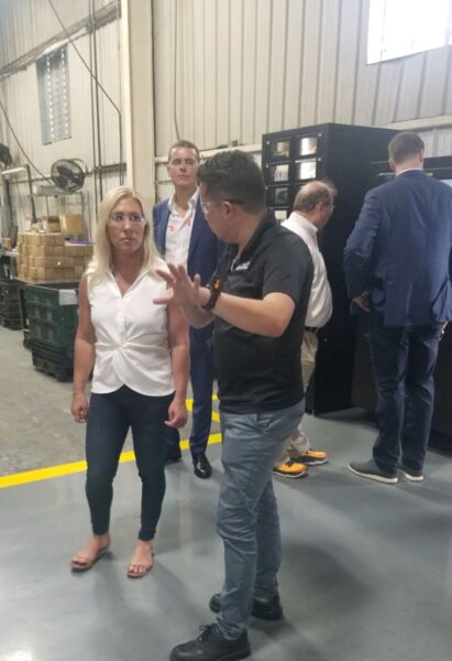 Congresswoman Marjorie Taylor Green of the 14th Congressional District stopped in Dade County on Monday, August 7th. While visiting, she met with water company officials about grants they are in the process of acquiring. Green also met with the owner and management of Trenton Pressing and toured their new facility in the Trenton Industrial Park.