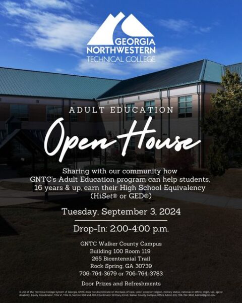 HomeLocalGNTC Adult Education Open House At The Walker County Campus Tuesday, September 3 2:00-4:00 p.m.GNTC Adult Education Open House At The Walker County Campus Tuesday, September 3 2:00-4:00 p.m.Thu, August 22, 2024 SHARE NOW GNTC Adult Education Open House at the Walker County Campus Tuesday, September 3 2:00-4:00 p.m. Loading advertisement…