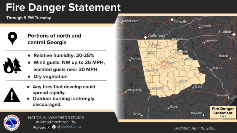 Our area is under a high risk of fire danger warning through this evening. Outdoor burning is strongly discouraged.