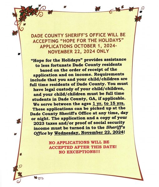 The Dade county Sheriff’s Office started giving out and accepting Hope for the Holidays applications.