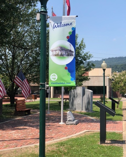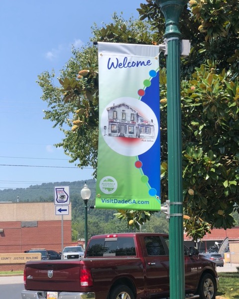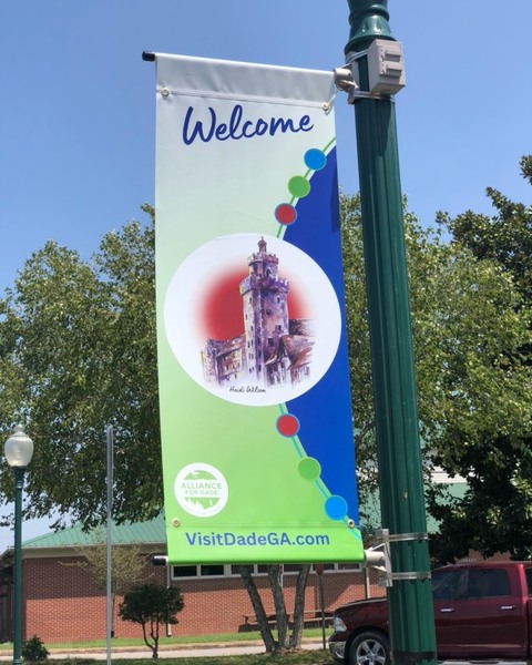 Under the hashtag #visitdadega, Trenton invites individuals to explore the town’s offerings. The banners, featuring historic landmarks, enhance Trenton’s appeal as a destination that encapsulates both heritage and creativity, catering to various interests among tourists and locals alike.