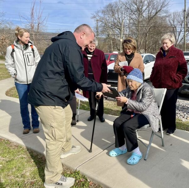 Mrs. Eloise Gass was honored today for over 40 years of service with Tree City USA. Those in attendance celebrating with her were friends, family, the City of Trenton, Optimist Club of Trenton-Dade, Georgia Forestry Commission and Dade County 4-H. They gathered to thank Mrs. Eloise for helping make Dade county a beautiful place to live and planted a tree in her honor.
