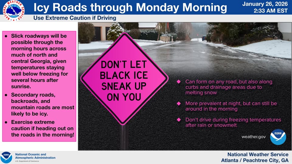 NWS Issues Black Ice Warning for North Georgia