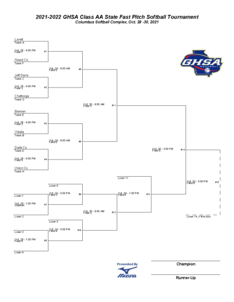 Weather has played a role again in the GHSA State Softball Championships in Columbus. Because of rain, the AA State Championship first round game scheduled between Dade and Union County has been rescheduled for Thursday at 4 PM.
