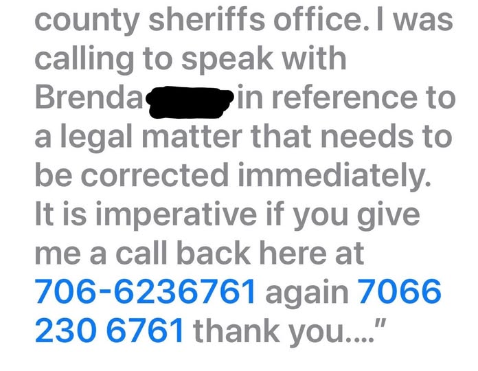 A screenshot provided to the Sheriff’s Office shows the caller using poor grammar and unprofessional language, which officials say is one of the most obvious signs that the communication is not legitimate.