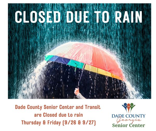 The Dade County Senior Center and Transit will be closed on Thursday, September26th through Friday, September 27. If you have an appointment already scheduled with Transit they will be contacting you shortly.