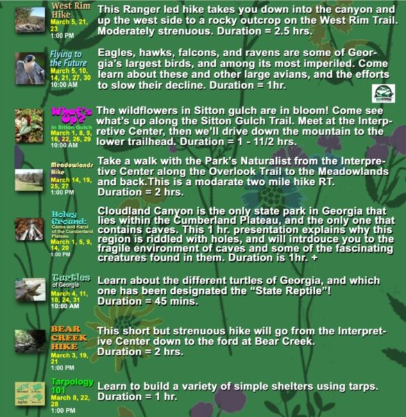 Bring the family and check out all the amazing educational activities and adventures at Cloudland State Park! Parking is $5, making memories…priceless!
