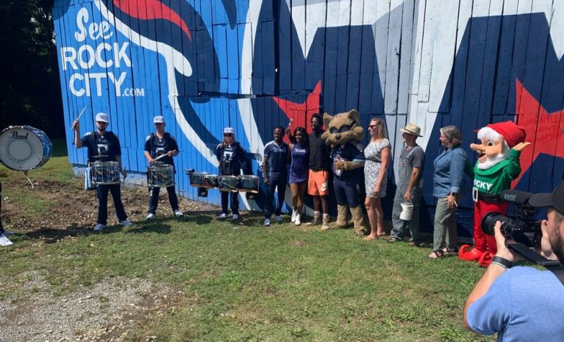 The Titans and See Rock City held a media event at the Shellmound barn location on Wednesday morning, where leadership from each group, Titans cheerleaders and mascot T-Rac put the ceremonial finishing touches on the barn.