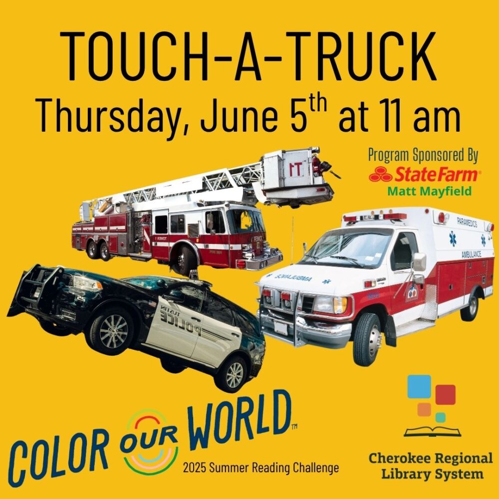 Get ready, kids! The Touch-a-Truck event is rolling into the Dade County Library this Thursday, June 5th at 11 a.m. as part of the Summer Reading Program!