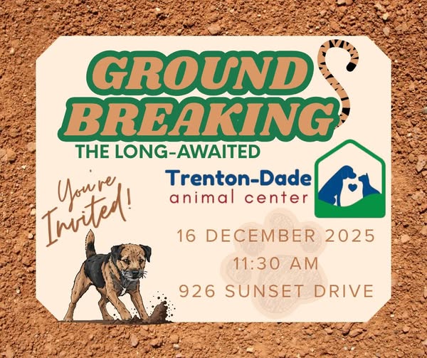 Trenton, GA — The long-awaited Trenton-Dade Animal Center is officially taking shape, and the community is invited to celebrate the milestone. The groundbreaking ceremony will take place on December 16, 2025, at 11:30 a.m. at 926 Sunset Drive, Trenton.